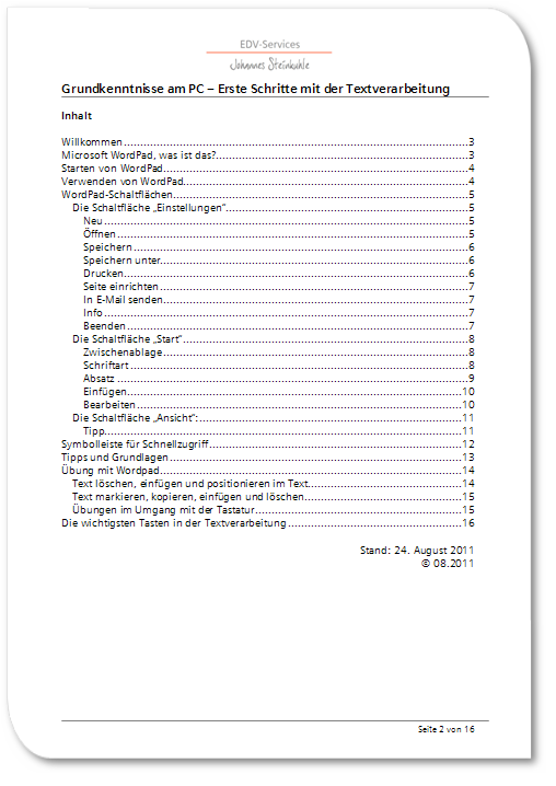 Sie möchten Texte schnell und schön schreiben? Textverarbeitungsprogramme machen es möglich und lassen Sie Ihre „alte Schreibmaschine“ schnell vergessen. Aber welches Programm ist für mich das richtige? Da Sie ganz neu in dem Thema sind fangen wir mit einem Basisprogramm (WordPad) an, mit dem Sie die Grundlagen der Textverarbeitung üben können. |